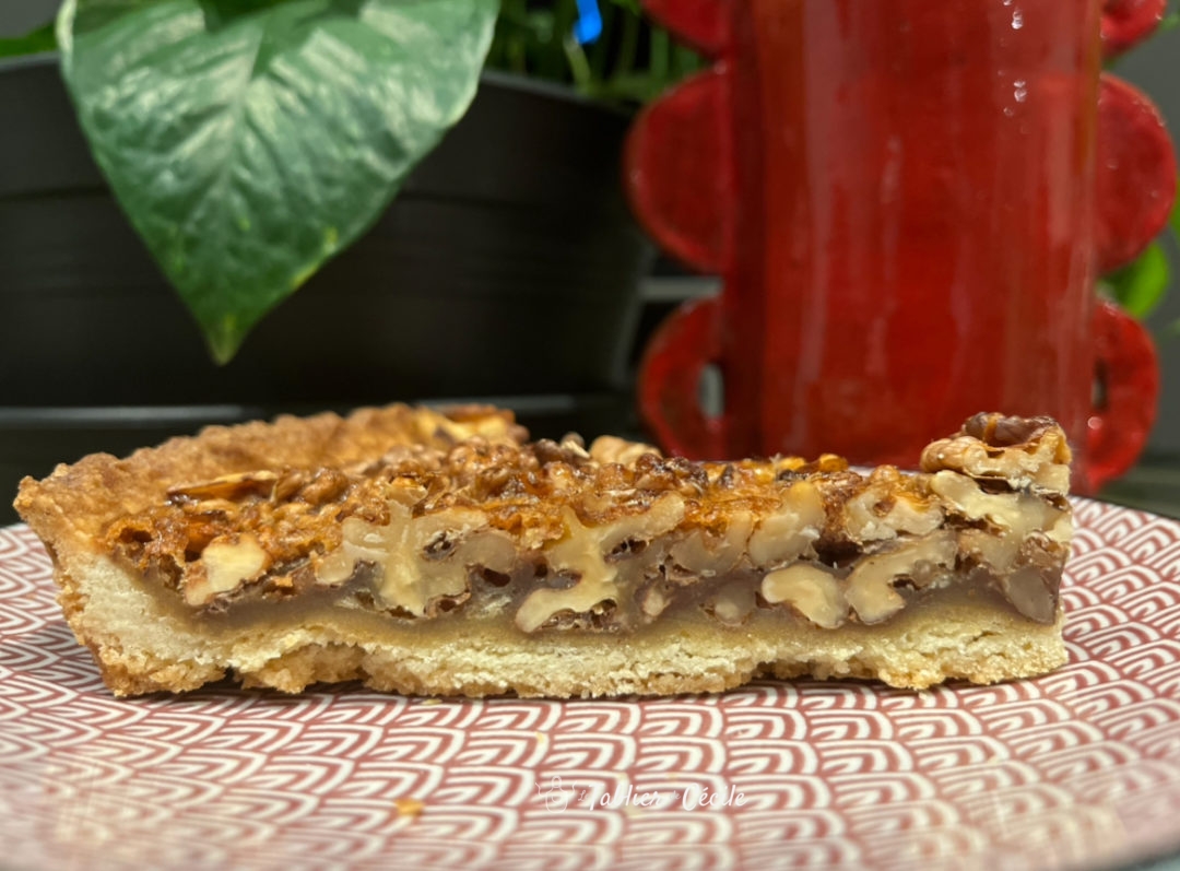 Dans un saladier, déposez la farine, le sucre puis ajoutez le beurre coupé en petits morceaux. Sablez du bout des doigts l’ensemble afin de former un mélange sableux. Il faut que le beurre enrobe bien la farine car c’est ce qui va donner toutes ses caractéristiques à la pâte sablée. Ajoutez l’œuf et mélangez rapidement l’ensemble avec les mains. Fraisez (poussez en écrasant) la pâte avec la paume de la main afin que tous les ingrédients s’incorporent bien entre eux (l’idéal étant de faire cette opération sur votre plan de travail, pas dans le saladier). Formez une boule et filmez-la. Placez la pâte au réfrigérateur au moins 2 heures. Préchauffez le four à 180°C. Etalez la pâte sur votre plan de travail fariné. Foncez un moule à tarte avec la pâte (pensez à la piquer avec une fourchette). Personnellement j’ai fait précuire la pâte 15 minutes. Pendant de temps, faites fondre le beurre. Dans un saladier, mélangez le sucre, le miel et les œufs. Ajoutez le beurre fondu et fouettez à nouveau. Ajoutez la farine et mélangez à nouveau. Incorporez les noix à l’appareil. Versez l’appareil sur la pâte et enfournez pour 35 minutes.Tarte aux noix du jardin et au miel de Francilly-Sélency